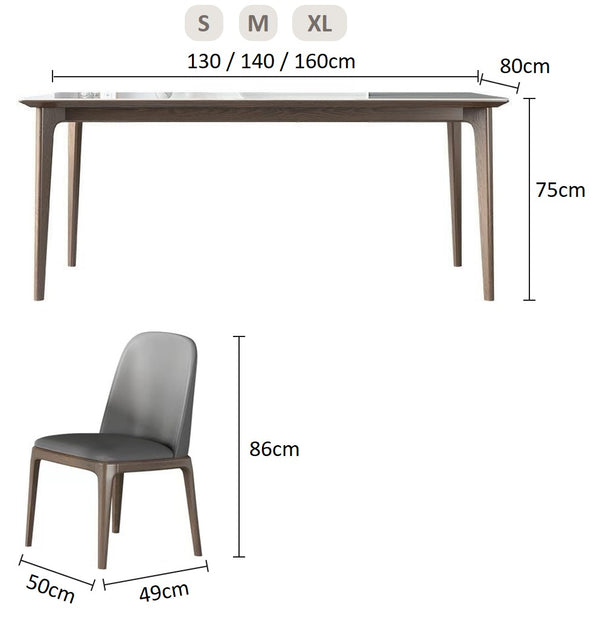 - Solid Ash Wood Chairs: The dining chairs feature solid ash wood, ensuring durability and stability. The chairs are upholstered in high-quality PU leather, which has a smooth and refined texture, providing a comfortable seating experience.