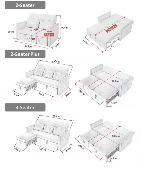 - Seamlessly switch between sofa mode, stretch mode, and bed mode